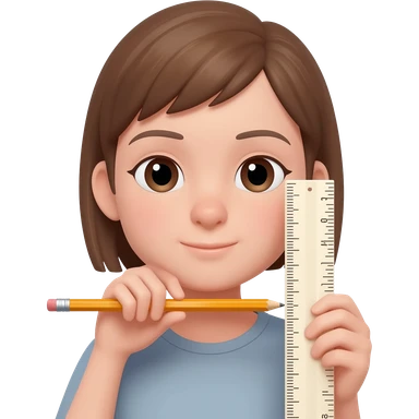 Girl holding a pencil horizontally under her chin with one hand and a ruler vertically from her ear downwards with the other hand emoji