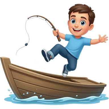 a guy falling off a boat with a fishing rod emoji