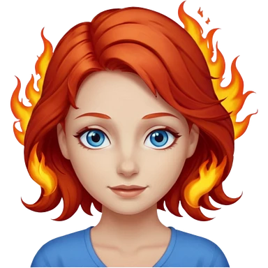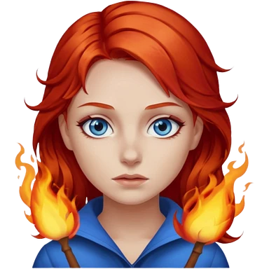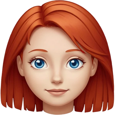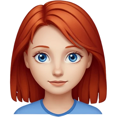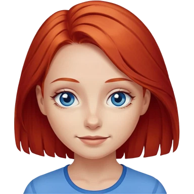 A girl with red hair and intense blue eyes. Delicate dark circles under her eyes give her a slightly tired look, and her smile belies any fatigue. emoji | AI Emoji Generator