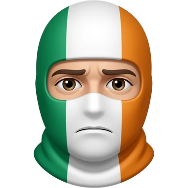 A crying emoji wearing an Irish tricolour balaclava emoji