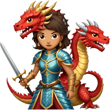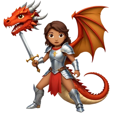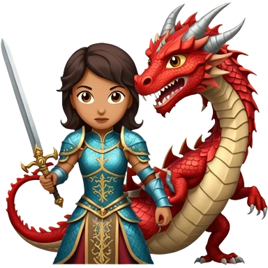 a girl with white hair fighting a dragon emoji | AI Emoji Generator