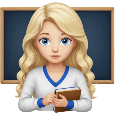 A Blonde girl studying With pin shirt emoji