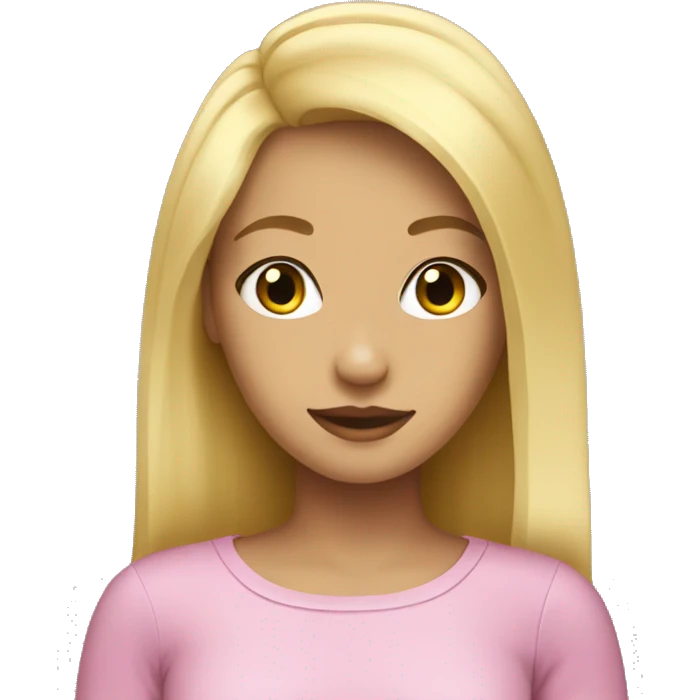 A girl blonde medium shape not popular looking, blue eyes, slightly wavy long hair, pink top emoji