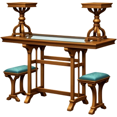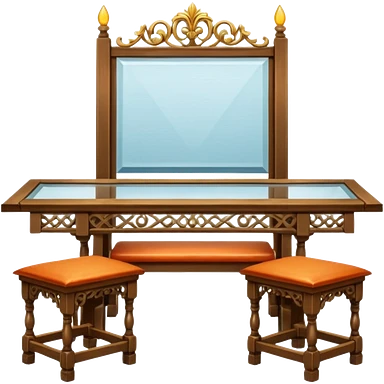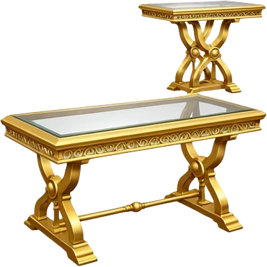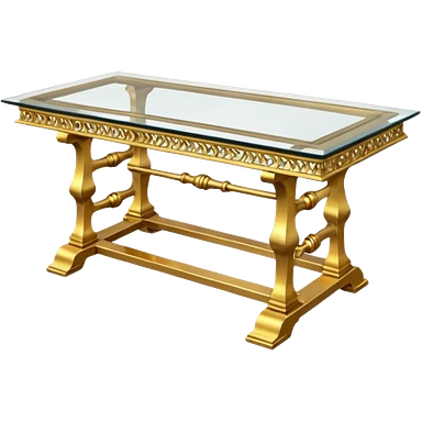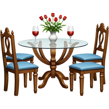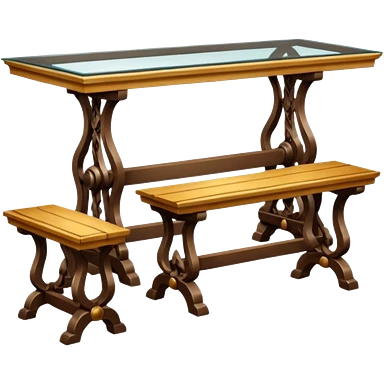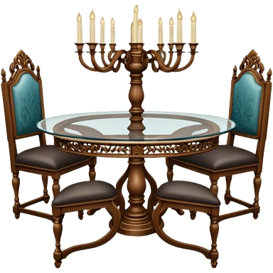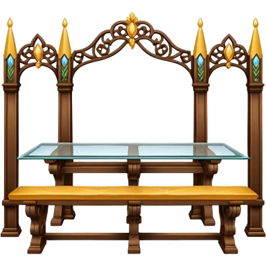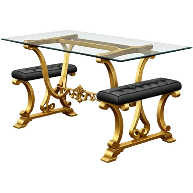 A glass topped ding table with 2 side benches and 2 thrones at the ends emoji | AI Emoji Generator