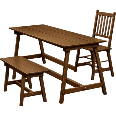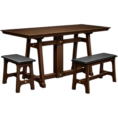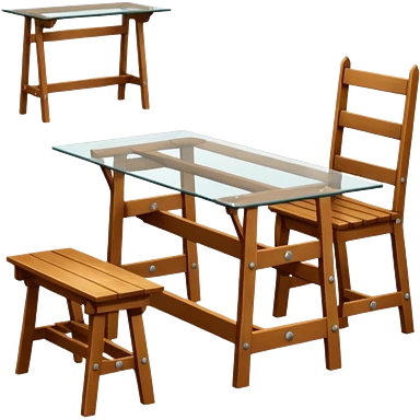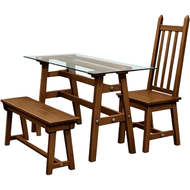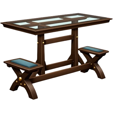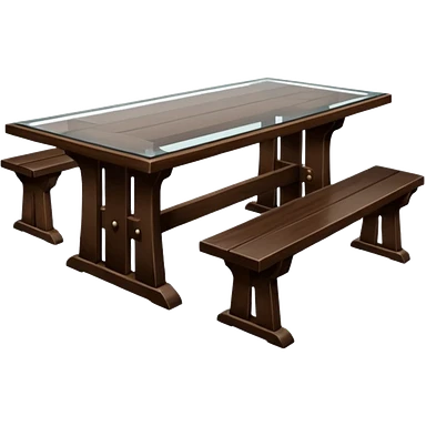 A glass topped rectangular trestle table with a bench on each long sided and a high-backed throne on each short side emoji | AI Emoji Generator