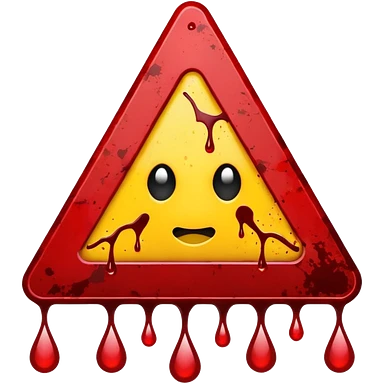 A triangular danger and a bright yellow background. In the center, a dark red blood splatter spreads outward, with a few drops dripping down the sign. The design gives a wild, intense, and dangerous vibe, as if warning of something violent or hazardous. emoji