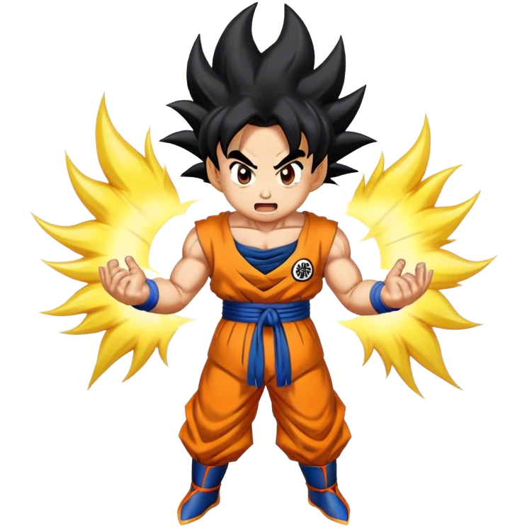 A Goku Emoji Going Super Saiyan with an aura around him emoji | AI Emoji Generator