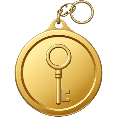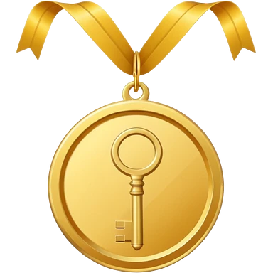 a gold medal with a key engraved on it emoji | AI Emoji Generator
