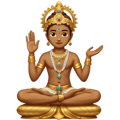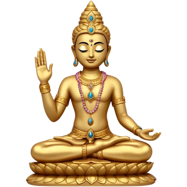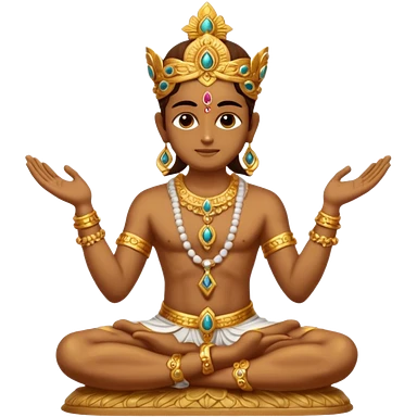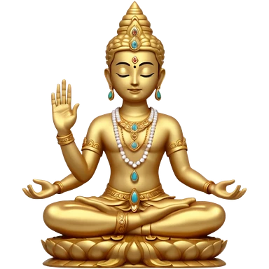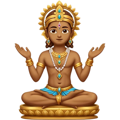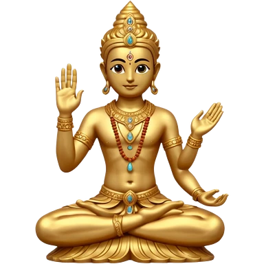 a golden statue of a Hindu deity seated in a yogic posture with one hand in a blessing gesture, adorned with ornate jewelry�. The figure sits on a decorated pedestal, radiating a sacred and traditional aura�. emoji | AI Emoji Generator