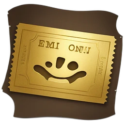 A golden ticket with ‘Pat Cohans’ engraved on the bottom of it emoji | AI Emoji Generator