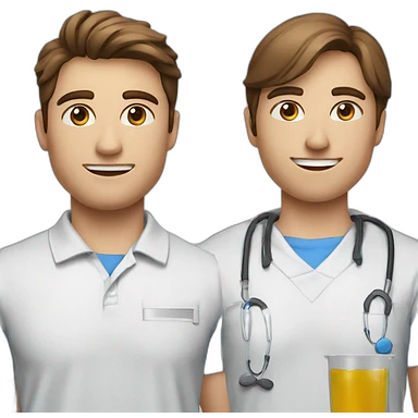 A good looking brown hair, bleu eye with a squared jaw physiotherapist with a doctor lab coat emoji | AI Emoji Generator