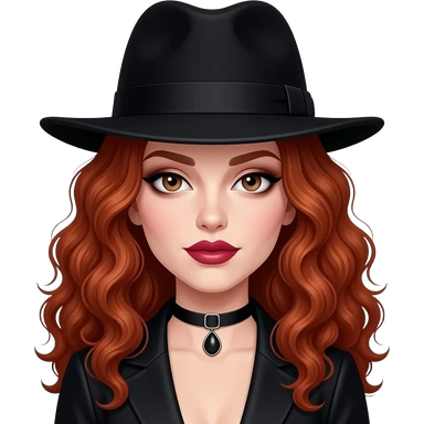 goth in curly red hairs vibrant mehroon lispstick wear a hat emoji