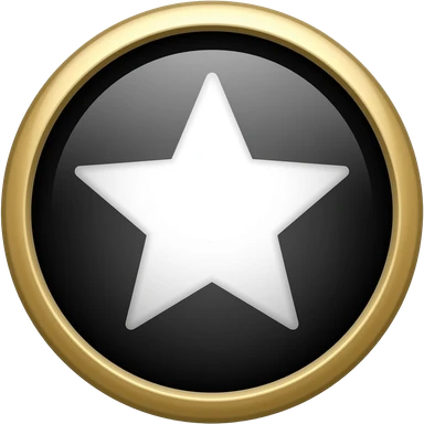 A high-quality 3D emoji icon of a white five-pointed star inside a circular glossy black badge. The badge has a thick, polished gold metallic rim. Soft cinematic lighting, Apple-style memoji aesthetic, isolated on a plain white background, 8k resolution, rendered in Octane, vibrant and clean. emoji