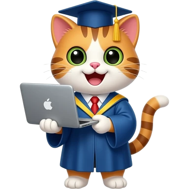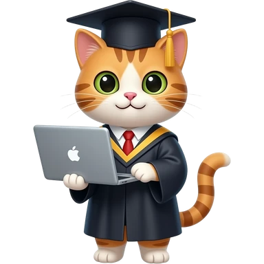 a graduate cat with a laptop emoji