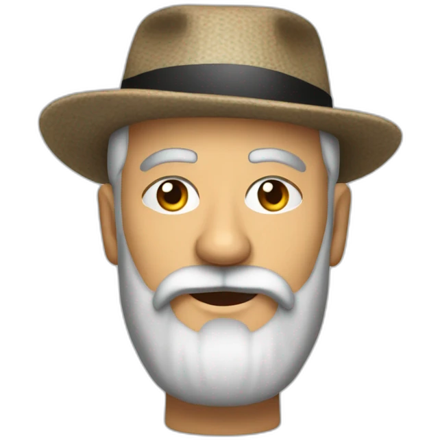 A grandfather with a black dappled beard with a cyber voice on the right side of his hat. emoji | AI Emoji Generator