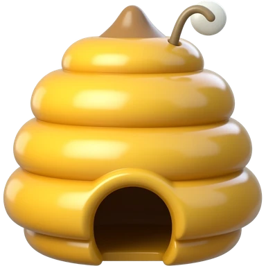 A cute beehive, 3D rendered, soft lighting, warm golden and yellow tones, smooth and glossy surface, small round entrance hole, sitting on a light neutral background, Apple emoji style, playful and friendly, high detail emoji