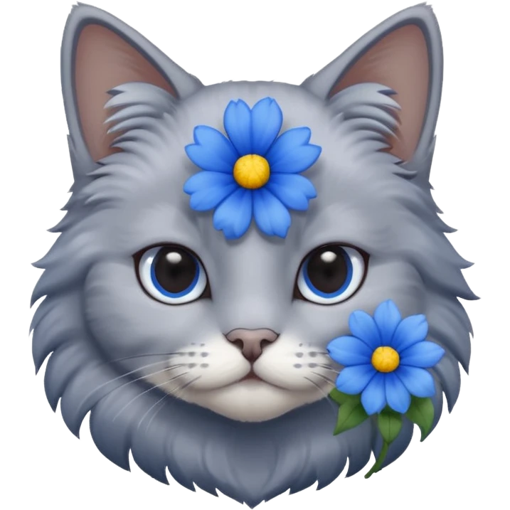 A gray cat with a blue flower emoji | AI Emoji Generator