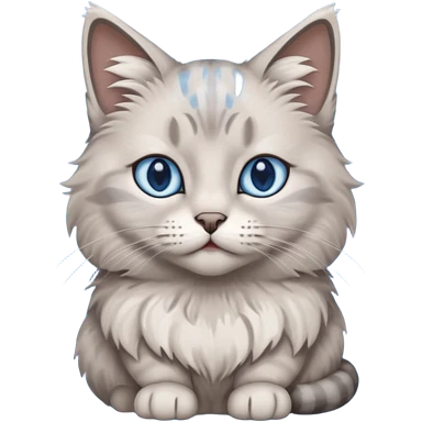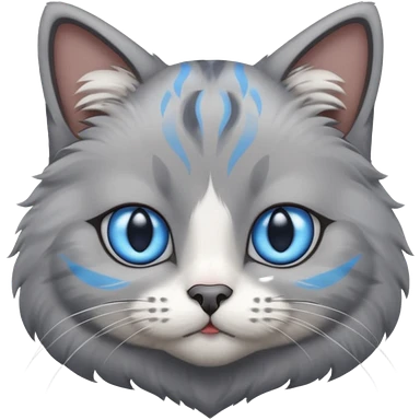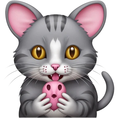 A gray cat with a happy face. Its body is a pink frosted cookie with paws sticking out. A rainbow trail follows behind, showing it's flying through space emoji | AI Emoji Generator
