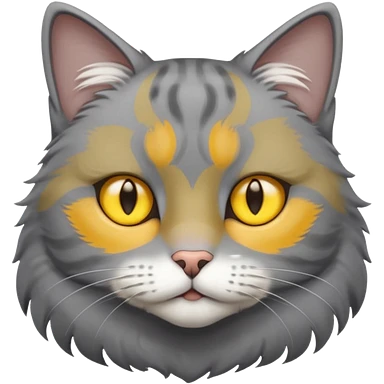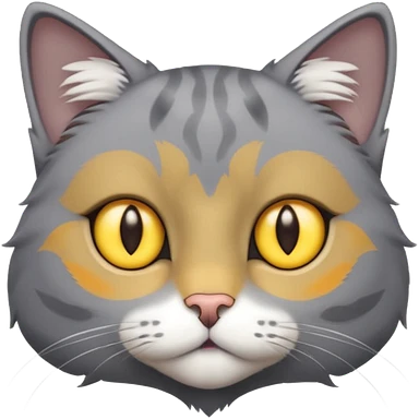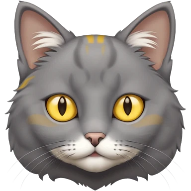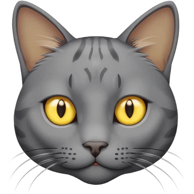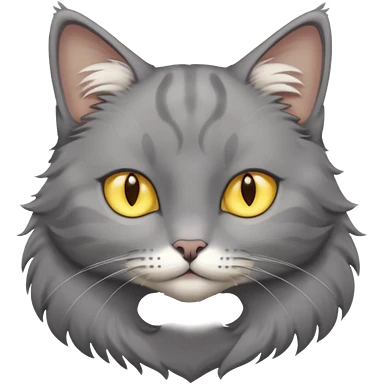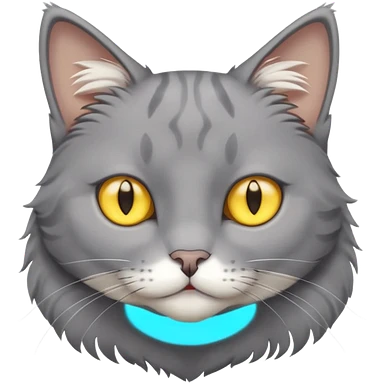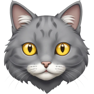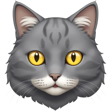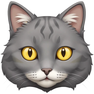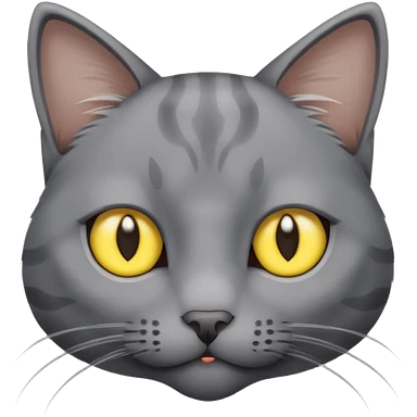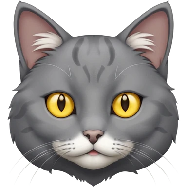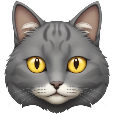 A gray cat with yellow eyes named max he is very cute and has a white spot on his neck he is a boy emoji