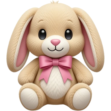 Create beige stuffed bunny plushie with a pink ribbon emoji