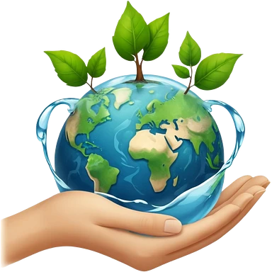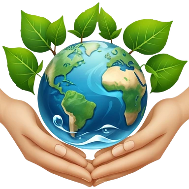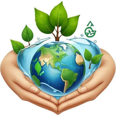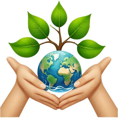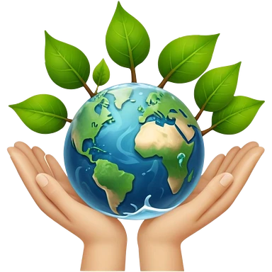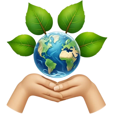 An icon featuring a green leaf, Earth held in hands, and a recycling symbol, symbolizing ecology. The design includes trees, clean water, and animals, representing environmental protection, sustainability, and ecosystems. Transparent background highlights the science of nature and conservation. emoji