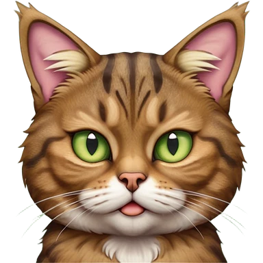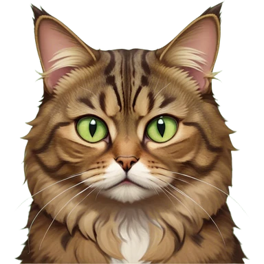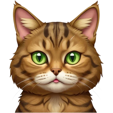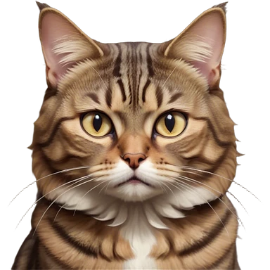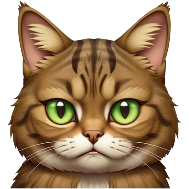 Cinematic Meme-Worthy Grumpy Brown Tabby Cat Portrait Emoji, Head held high but eyes filled with dramatic disappointment, fluffy brown fur with striking tabby markings, signature M-shaped forehead furrowed into an unmistakable scowl, large ears slightly angled back in disapproval, piercing golden-green eyes glaring with pure exasperation, Simplified yet hilariously over-exaggerated features, highly detailed, glowing with an aura of supreme annoyance, high shine, exhausted yet judgmental, stylized with an almost regal pettiness, bright but brooding, soft glowing outline, capturing the essence of a feline that has seen it all and is thoroughly unimpressed, so meme-worthy it feels like it could instantly become the next viral sensation of grumpiness! emoji