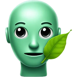 a green friendly bot that has a leaf sticking out of his head emoji