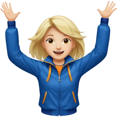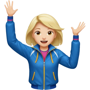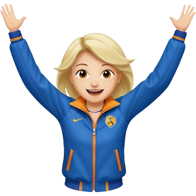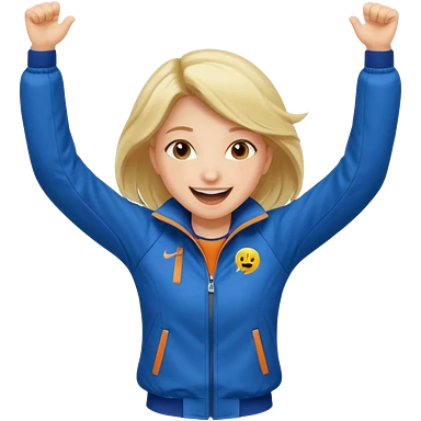 A girl in a sporty jacket, jumping slightly while cheering loudly. emoji