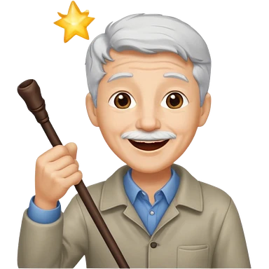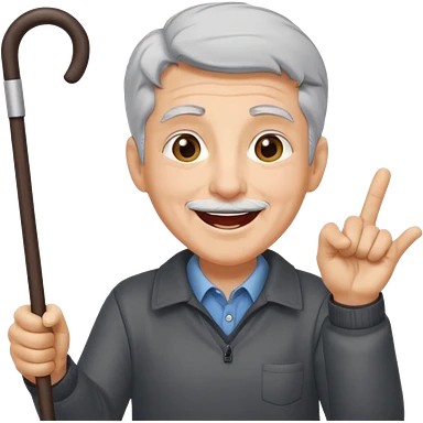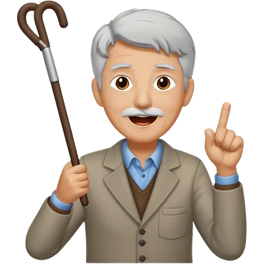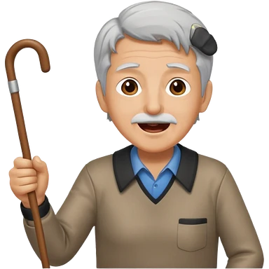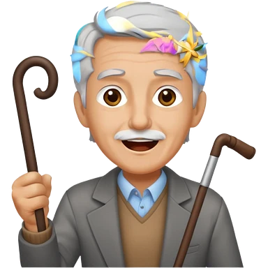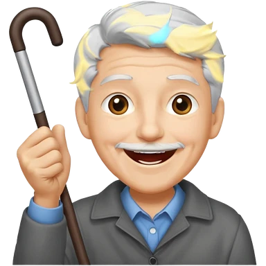 A grey-haired fan with cane in hand, cheering loudly with youthful spirit. emoji | AI Emoji Generator