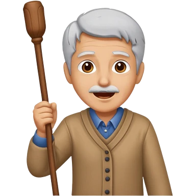 A grey-hair grandpa fan with cane in hand, cheer loudly with youthful spirit. emoji