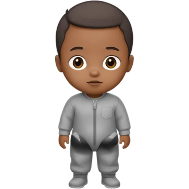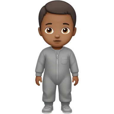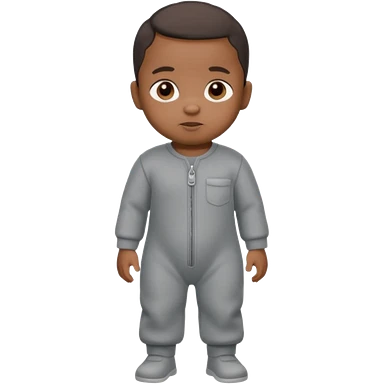 White child with bowl cut with a grey furry jumpsuit with peach dinosaurs on it emoji