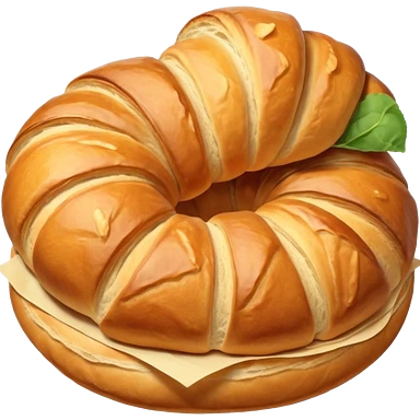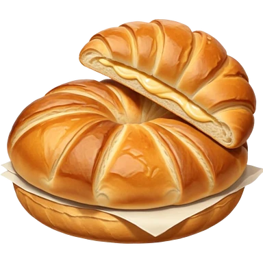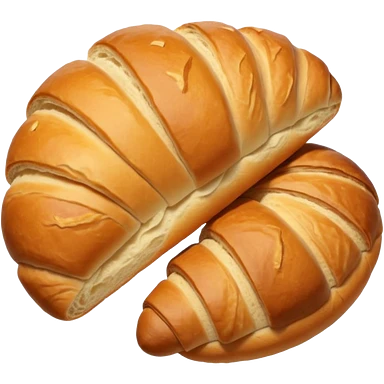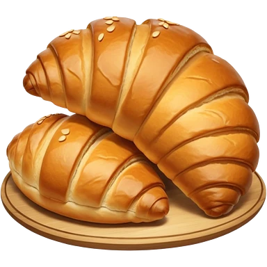 A group of baked goods: a round bread roll beside a small croissant on a warm golden background emoji | AI Emoji Generator