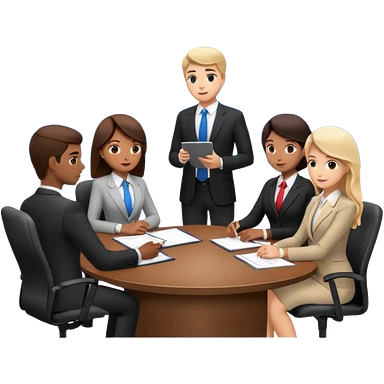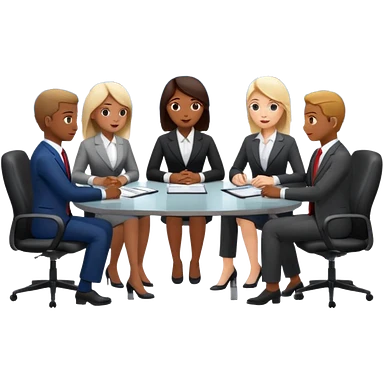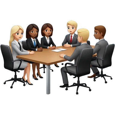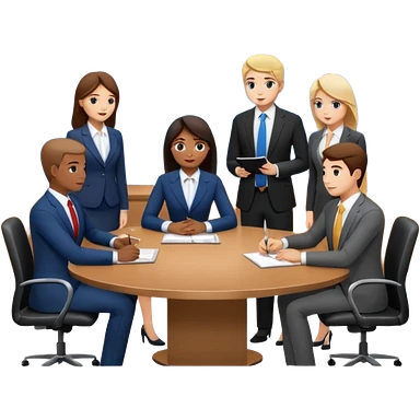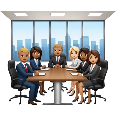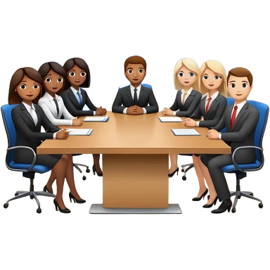 a group of coworkers in meeting room in long rectangular table emoji | AI Emoji Generator