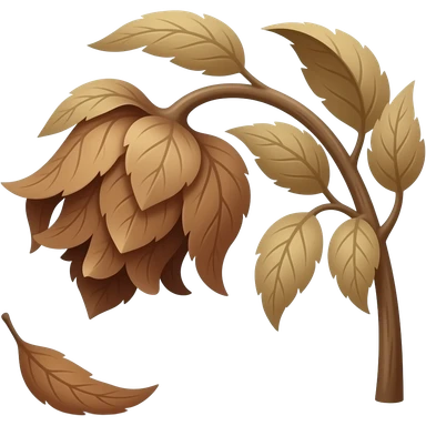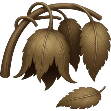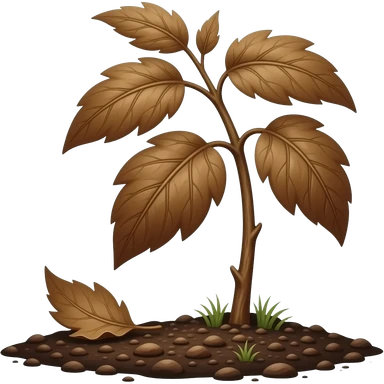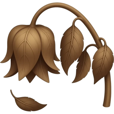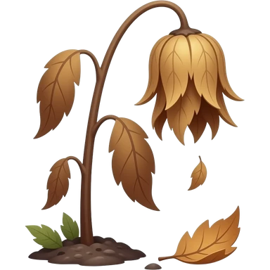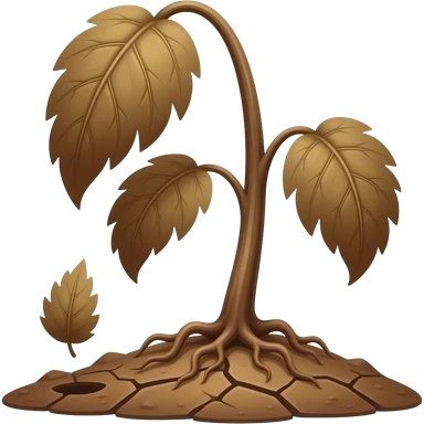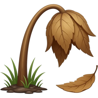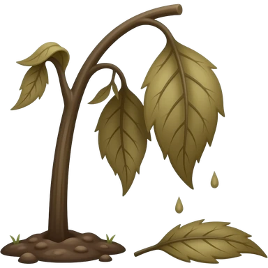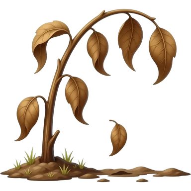 Wilted dead dark brown plant from the ground with leafs hanging and a leaf falling to the ground emoji