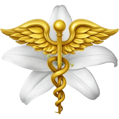Caduceu de Hermes com uma flor de Lis atrás emoji