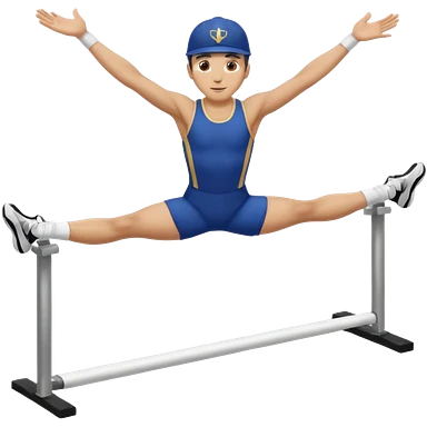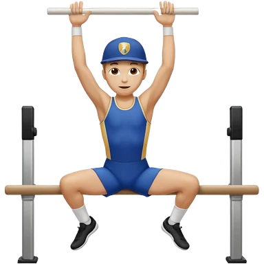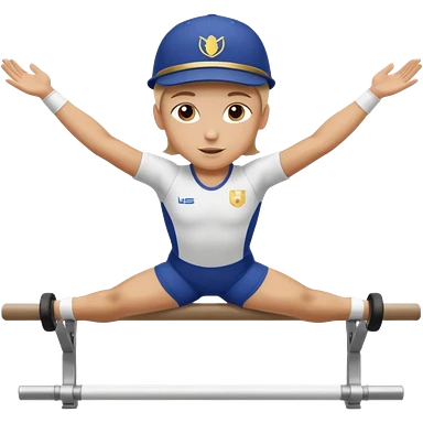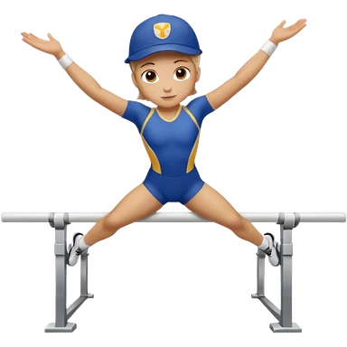 white athlete in uniform on the parallel bars wearing a cap emoji