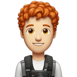 A guy is a hockey player in a red uniform with white stripes and number 71 together with a photographer girl with long brown hair emoji | AI Emoji Generator