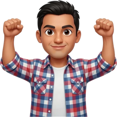 Mexican cholo wearing a fannel with elbows up and fists inwards together emoji