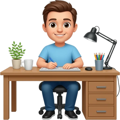 a guy sitting at home at the desk emoji