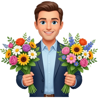 a guy holding two bouquets of flowers emoji