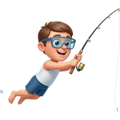 a guy diving into water after his fishing rod emoji