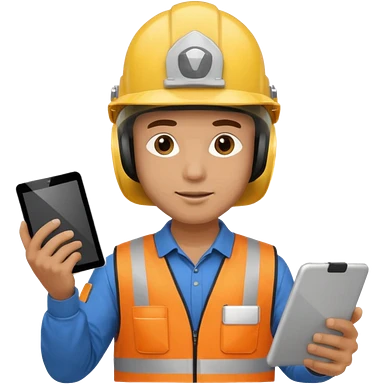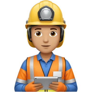a guy wearing safety outfit with helmet holding a safety first tablet emoji