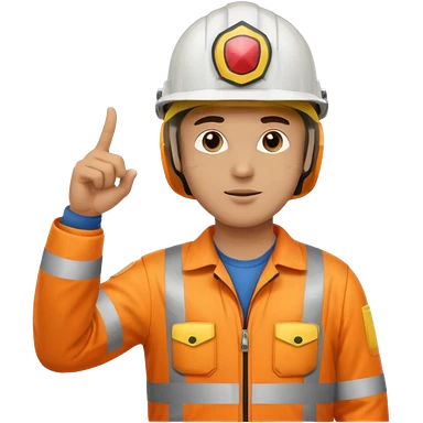 a guy wearing safety outfit with helmet standing and pointing finger to 3 oclock direction emoji | AI Emoji Generator
