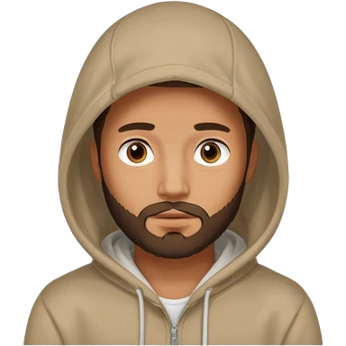 a guy wears a hoodie, his face is a mysterious, he looks pretty and handsome, but very distant he has a beard emoji
