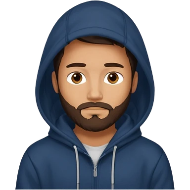 A guy wearing a black hoodie and a black cap He has a beard emoji