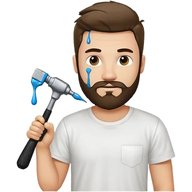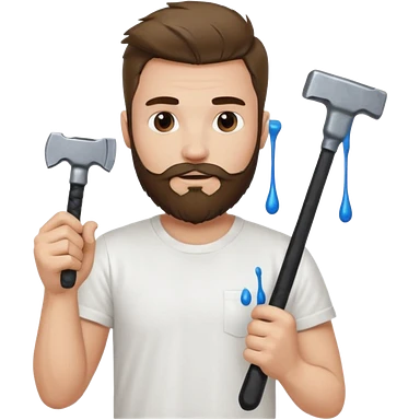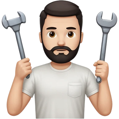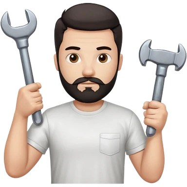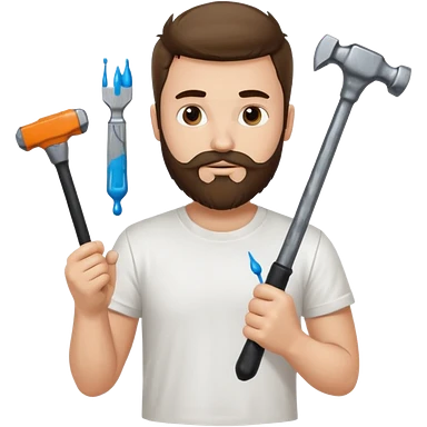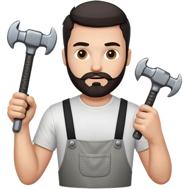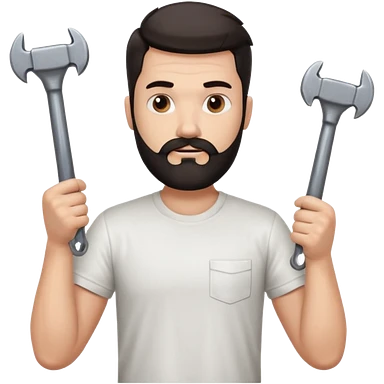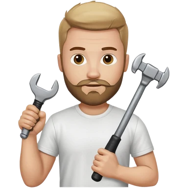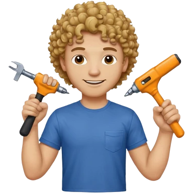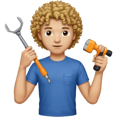 a guy who looks very handsome, has curly hair, wears a tee shirt and holds a screwdriver in one hand and a hammer in the other emoji | AI Emoji Generator