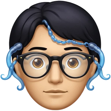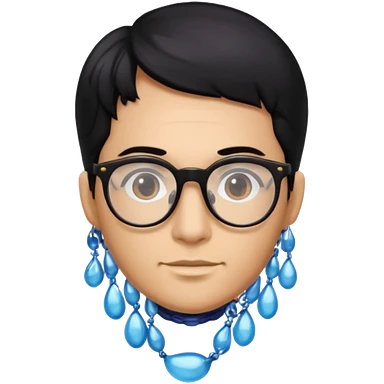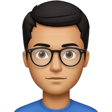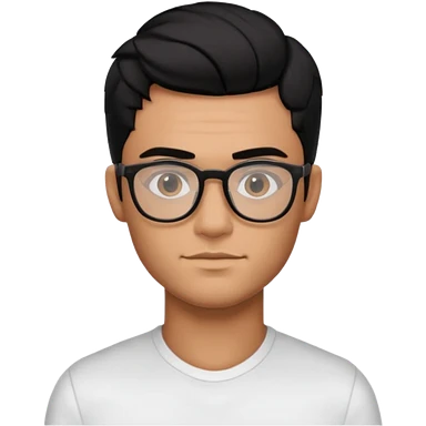 make a guy from portugal that has glasses and has a good jawline and a little masculine and black hair that spreads to the sides and make him glossy and shiny emoji