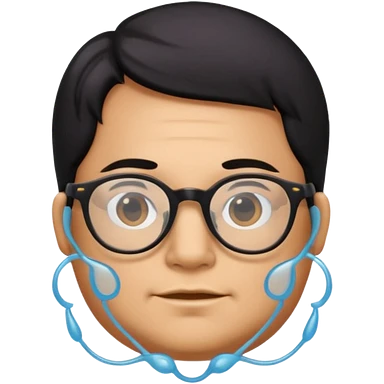 make a guy from portugal that has glasses and has a good jawline and a little cheeky cheeks and black hair that spreads like sauce and make him glossy and shiny emoji