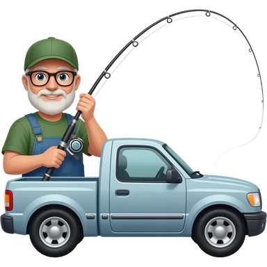 a guy with a huge bent fishing rod standing behind it with the line attached to a truck emoji | AI Emoji Generator