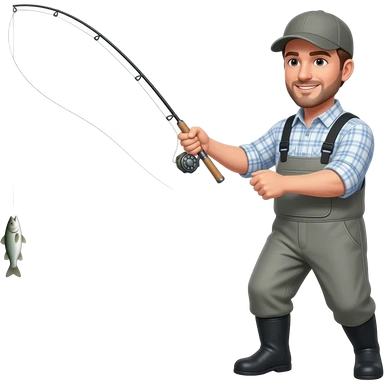 a guy fly fishing with grey waders using the fly fishing rod like a whip emoji